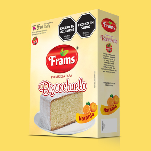 Rinde 14 porciones Cocción: 50' 60' Peso Neto: 500 gr. Polvo para preparar bizcochuelo sabor a Naranja. Libre de Gluten.