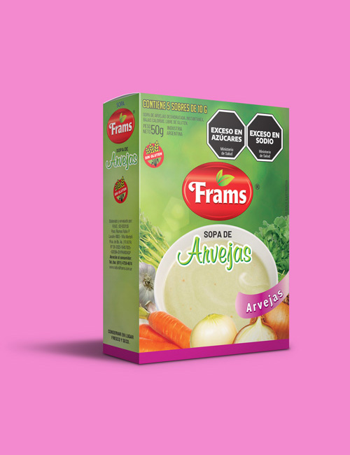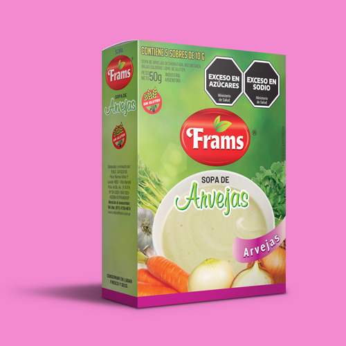 5 sobres de 10 gr Peso Neto: 50 gr. Sopa de Arvejas deshidratada, instantánea y de bajas calorías. Libre de Gluten.