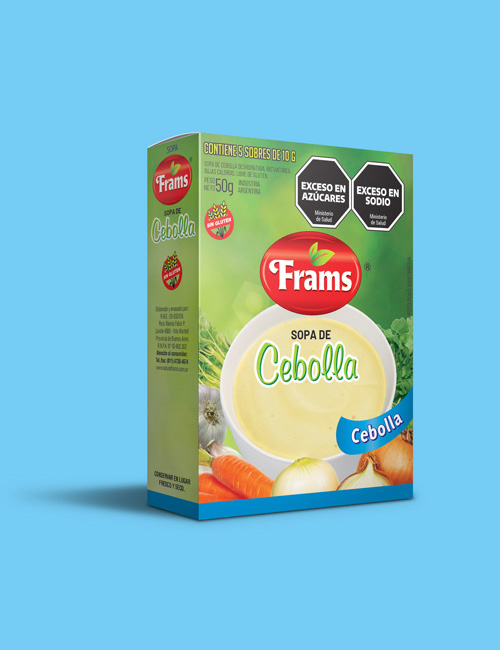 5 sobres de 10 gr Peso Neto: 50 gr. Sopa de Cebolla deshidratada, instantánea y de bajas calorías. Libre de Gluten.