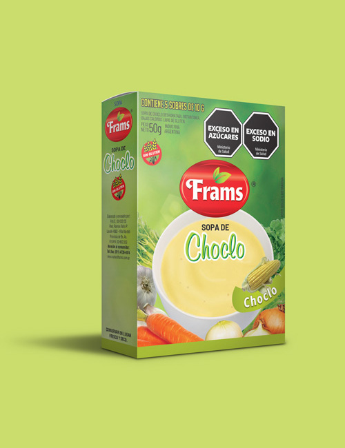 5 sobres de 10 gr Peso Neto: 50 gr. Sopa de Choclo deshidratada, instantánea y de bajas calorías. Libre de Gluten.