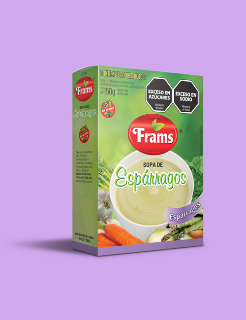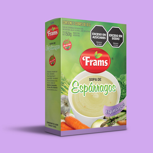 5 sobres de 10 gr Peso Neto: 50 gr. Sopa de Espárragos deshidratada, instantánea y de bajas calorías. Libre de Gluten.