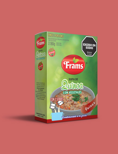 5 sobres de 10 gr Peso Neto: 50 gr. Sopa de Quinoa deshidratada, instantánea y de bajas calorías. Libre de Gluten.