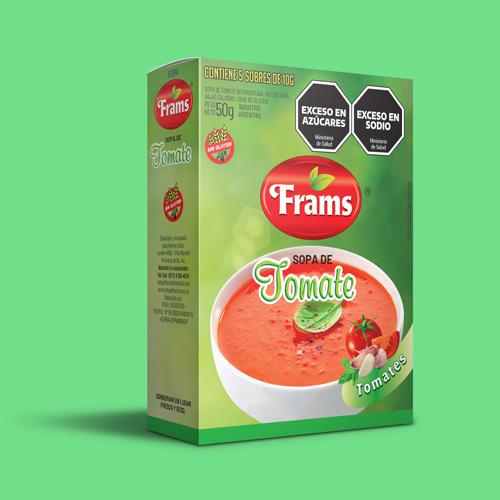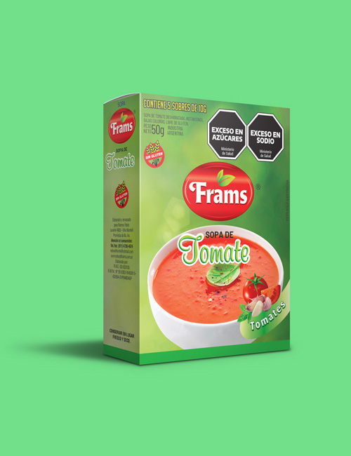 5 sobres de 10 gr Peso Neto: 50 gr. Sopa de Tomate deshidratada, instantánea y de bajas calorías. Libre de Gluten.